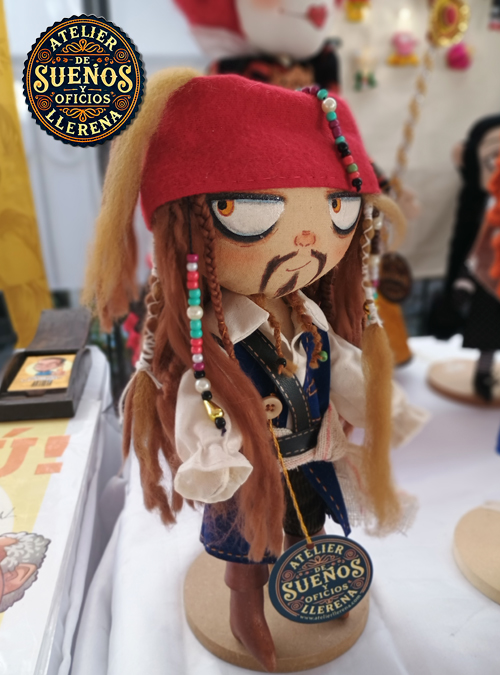 Hecho en Atelier Llerena, dentro de la colección “De Sueños y Oficios”, este muñeco celebra el espíritu libre, audaz y encantador del pirata más famoso de los siete mares.